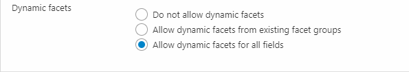 - Allow dynamic facets for all fields – this allows you to create dynamic facets on all fields, including system fields and facets not selected on the product catalog