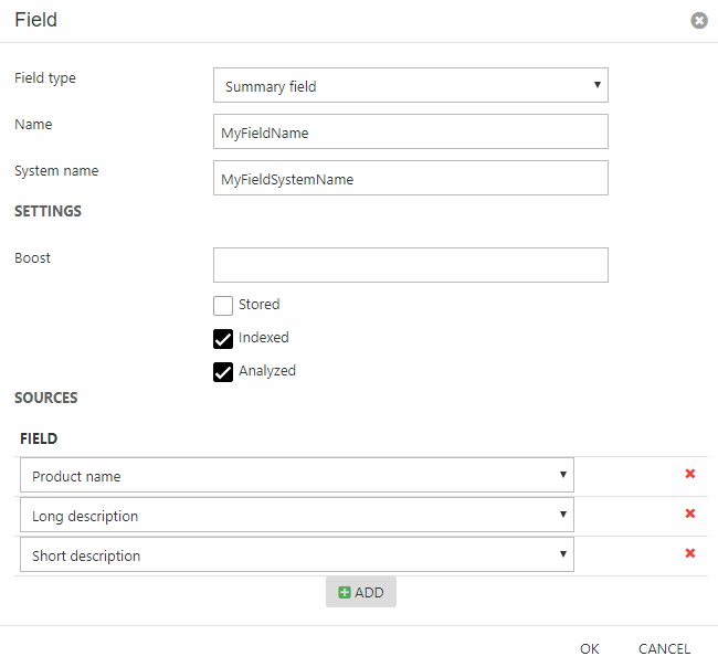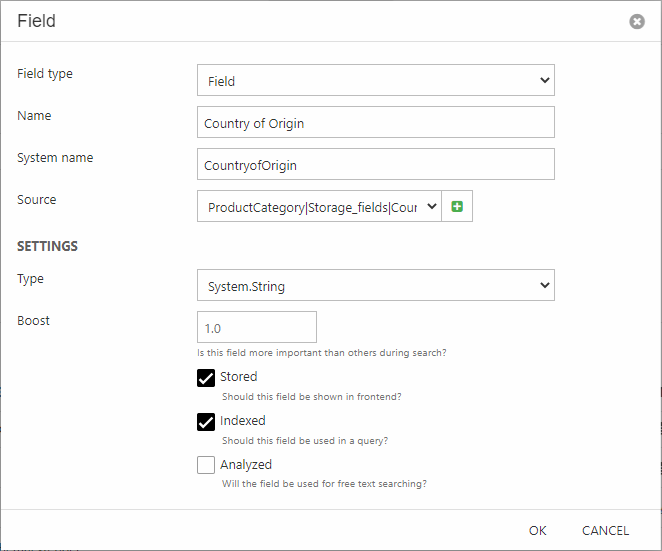 - Check Stored, Indexed and/or Analyzed as appropriate