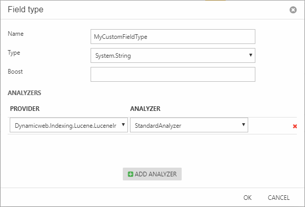 - Add one or more analyzers to the field type