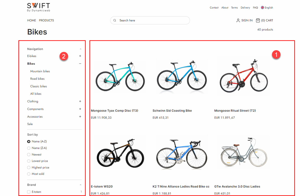 A product index is an index of product data on a solution – typically all standard and custom product fields as well as a lot of generated fields with additional information which is useful when publishing products to frontend (1), rendering facets (2), and for backend tasks in e.g. PIM.
