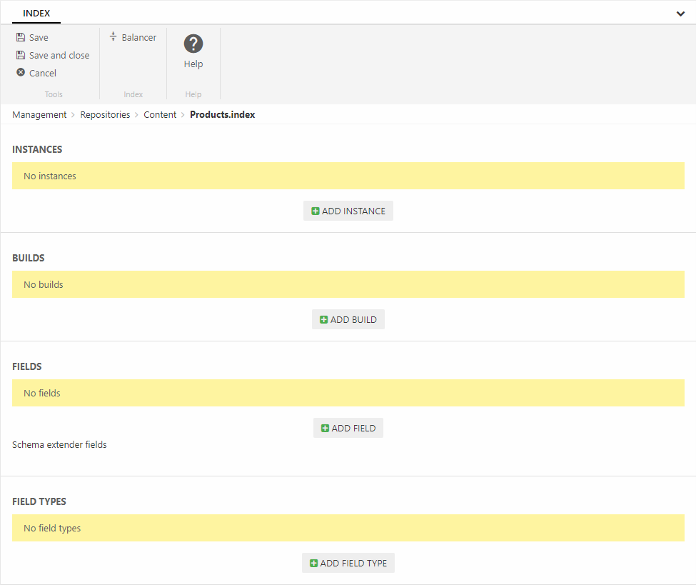 This creates an empty index (Figure 1.2) – you should now add instances to it.