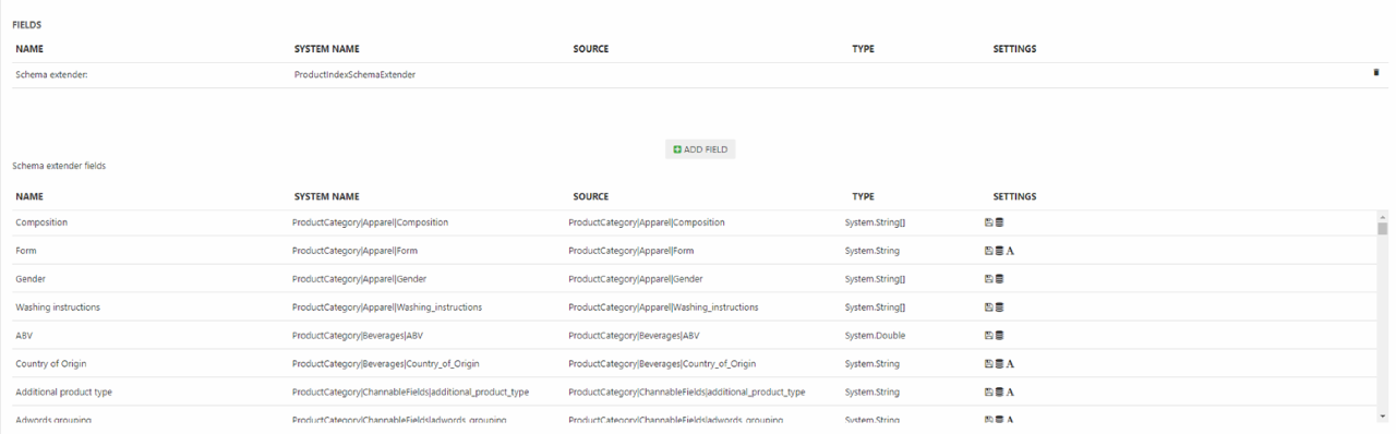 To make things (a lot) easier for you we’ve created a default set of fields typically used in product indexes – this default field set is defined in something called the ProductIndexSchemaExtender.