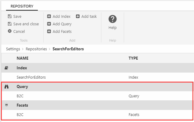 If you eventually outgrow the limitations of the Search for Editors configuration, you can export the generated query and facets and work with them as “normal” queries and facets under the repository you associated with Search for Editors.