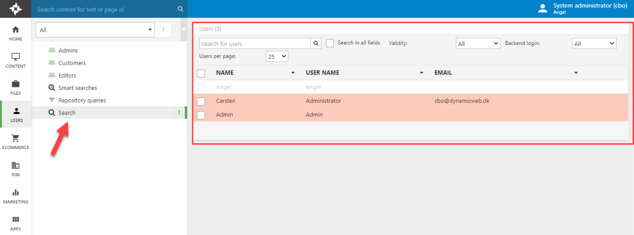Dynamicweb Users is our built-in suite of features for handling everything related to registered user accounts – whether they’re backend accounts like an Administrator or Editor account, or frontend accounts belonging to a salesperson or a customer.