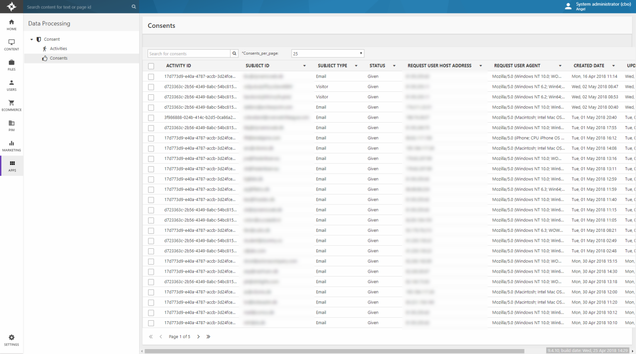 Consents can be browsed from the Consents view (Figure 3.1) inside the Data Processing app. You can also view consents for a specific activity by opening that activity, as described above.