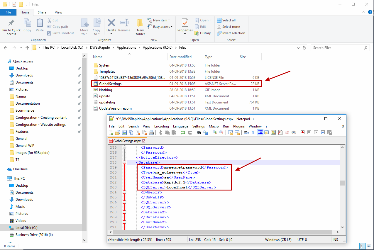 - Go to the Files folder and open Globalsettings.aspx in a text editor, e.g. notepad++ or visual studio code