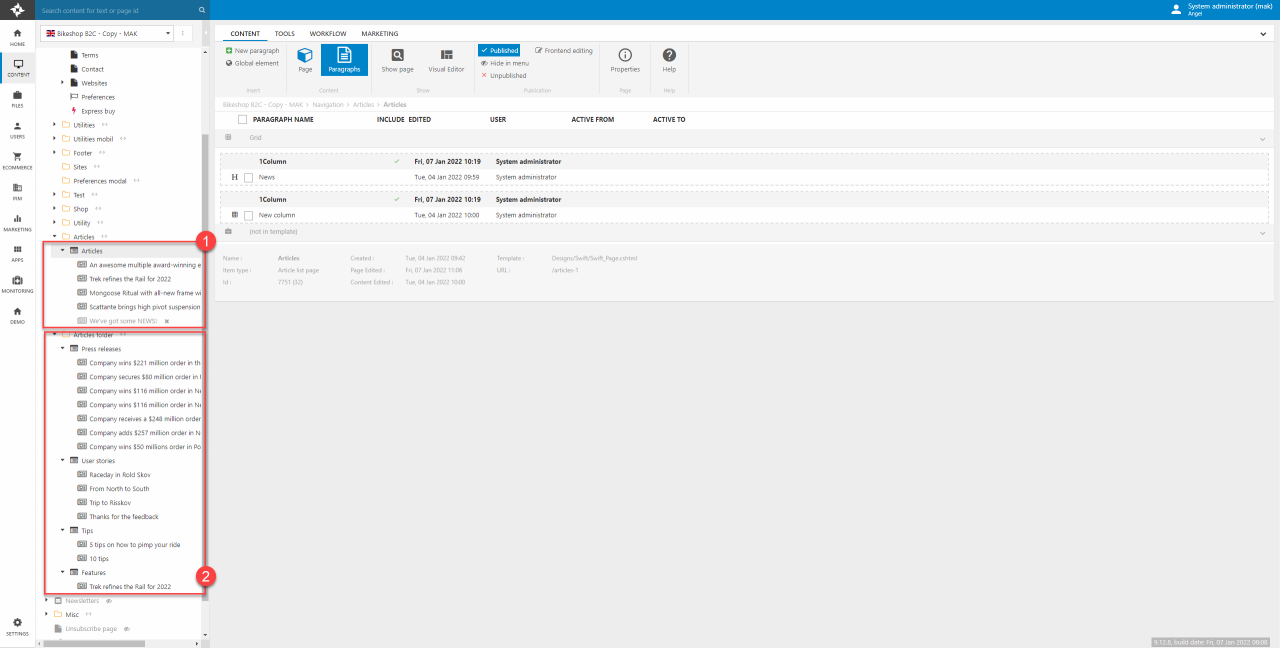 In this article we will explain how to create both articles and article lists. We’ll start by briefly explaining the structure of articles and how to create new articles in different categories (article lists). We will then move on to explain how to create new categories and how they and tags work. Finally, we’ve created a couple of examples to help you visualize some of the layout options you have when creating articles.