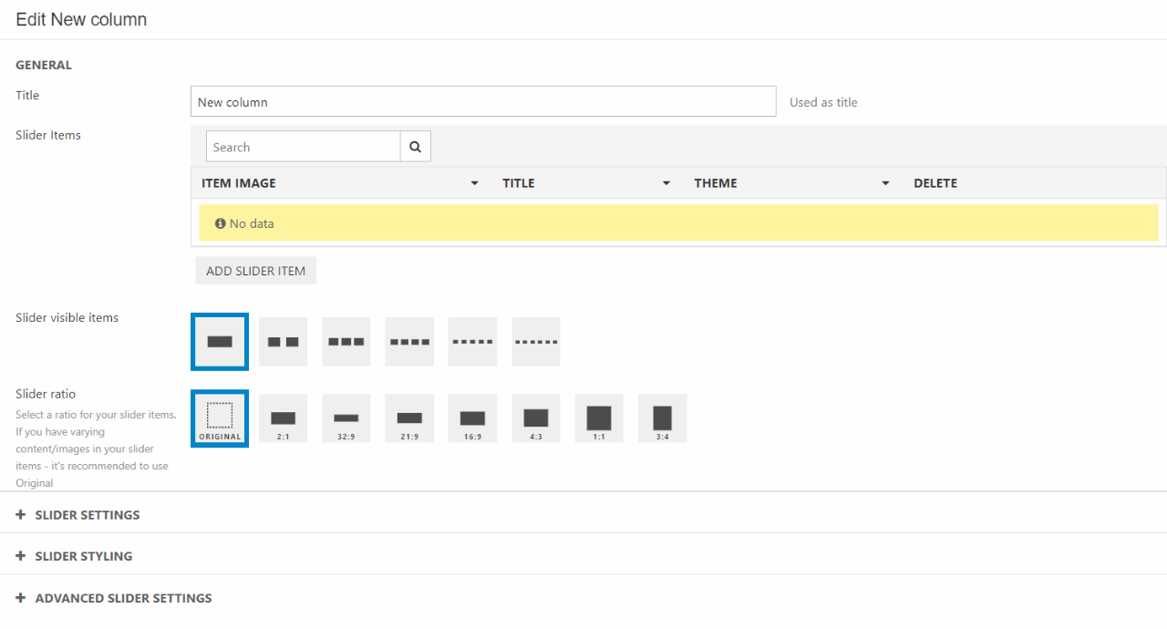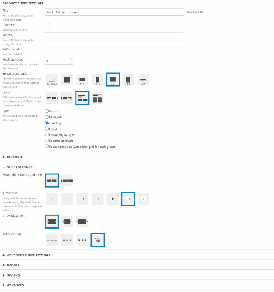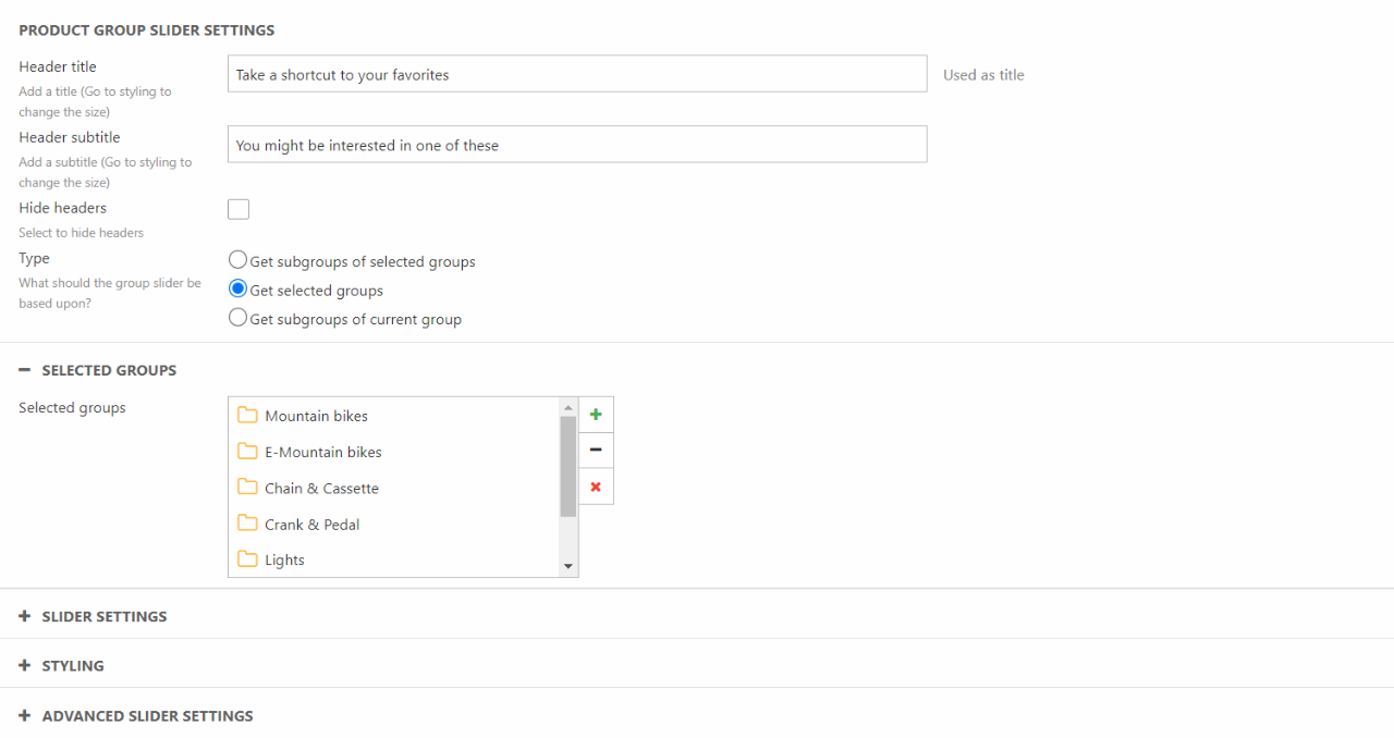 - Slider settings - Choosing this setting will also open a section called "Advanced slider settings"