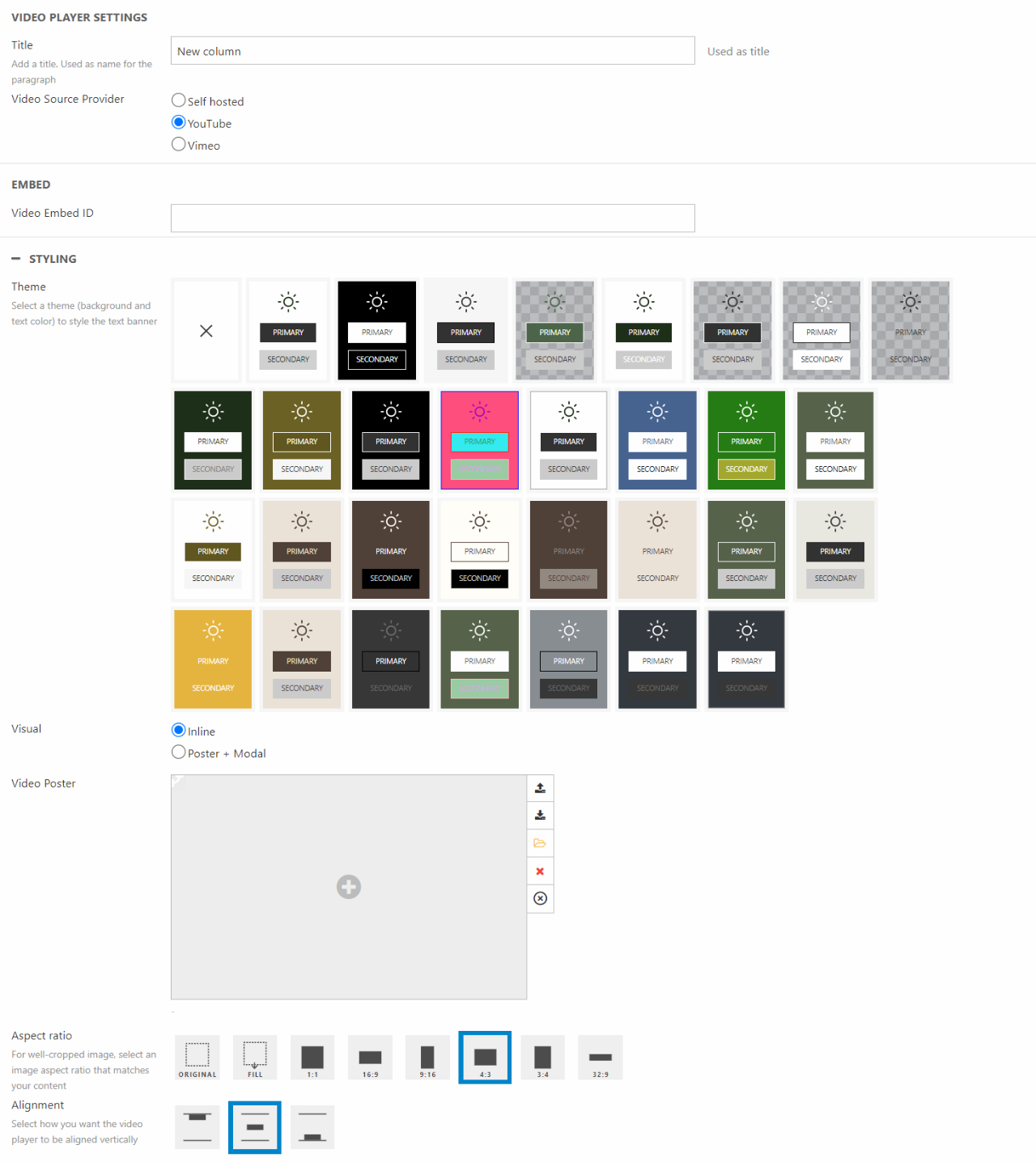 The editor also allows you to style the column with a theme and set the Aspect ratio of the video.