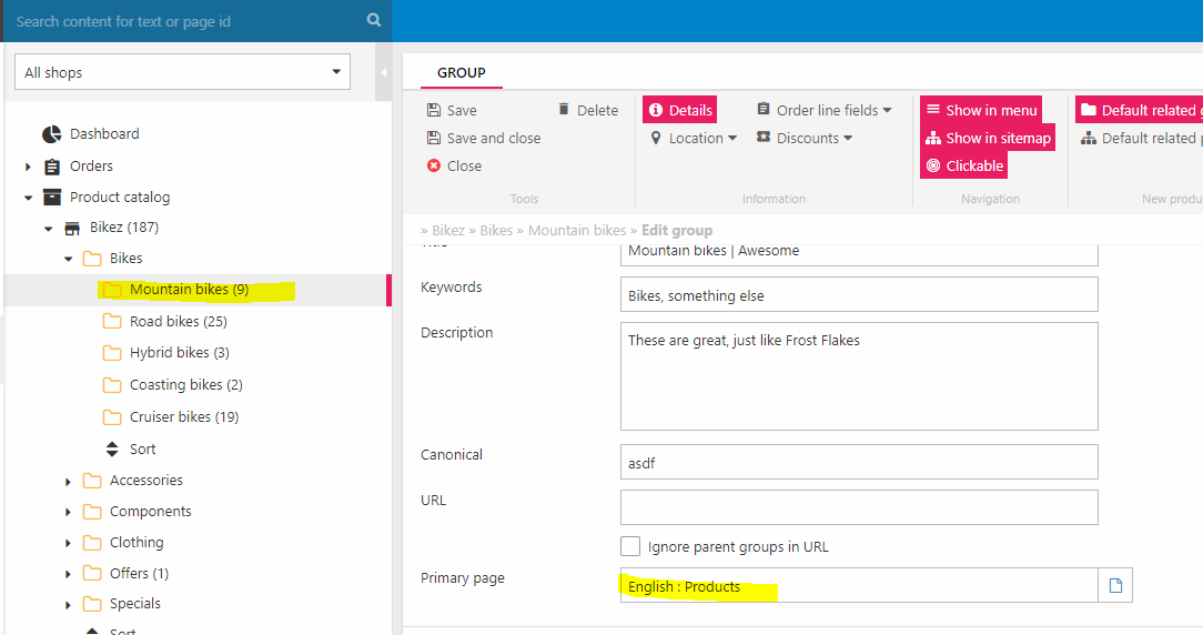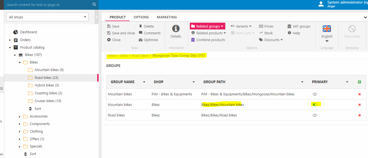 - The product must be located in at least 2 groups, one of which is marked as the primary group (Figure 1.1).