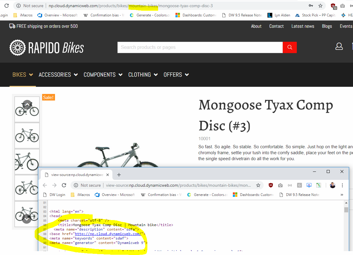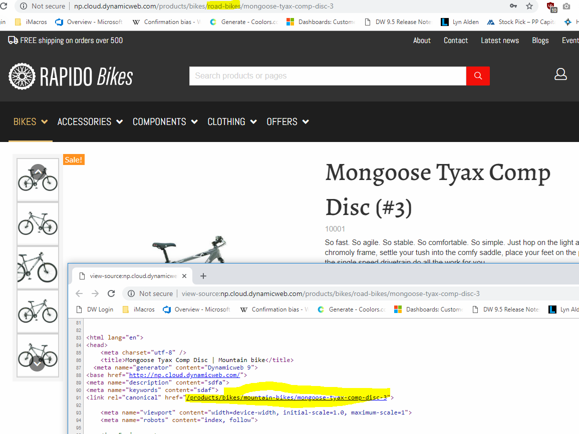 - When the non-primary path is visited, the canonical URL is rendered in the meta tag section (Figure 2.2)