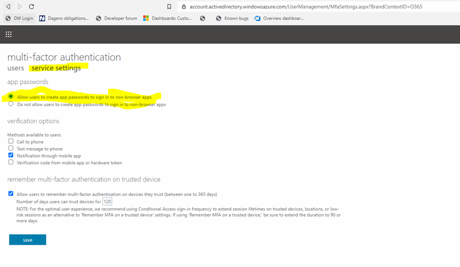 - Next the domain administrator must setup the domain to allow users to create app passwords – setup here (Figure 1.2)